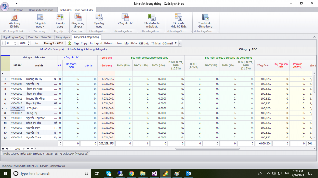 - Chương trình tự động tính toán và phân bổ các khoản lương, thưởng theo hệ số hưởng lương doanh thu của từng nhân viên.